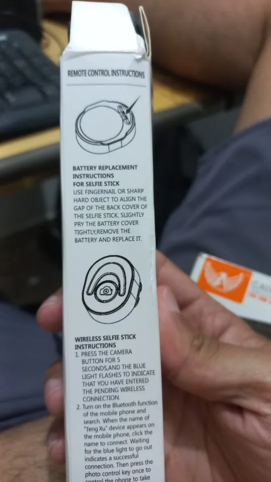 1-Aperte e segure o botão de disparo por 5 segundos para ligar o dispositivo.Um LED irá piscar indicando pareamento disponível com o smartphone.Após o pareamento o LED se apagará.