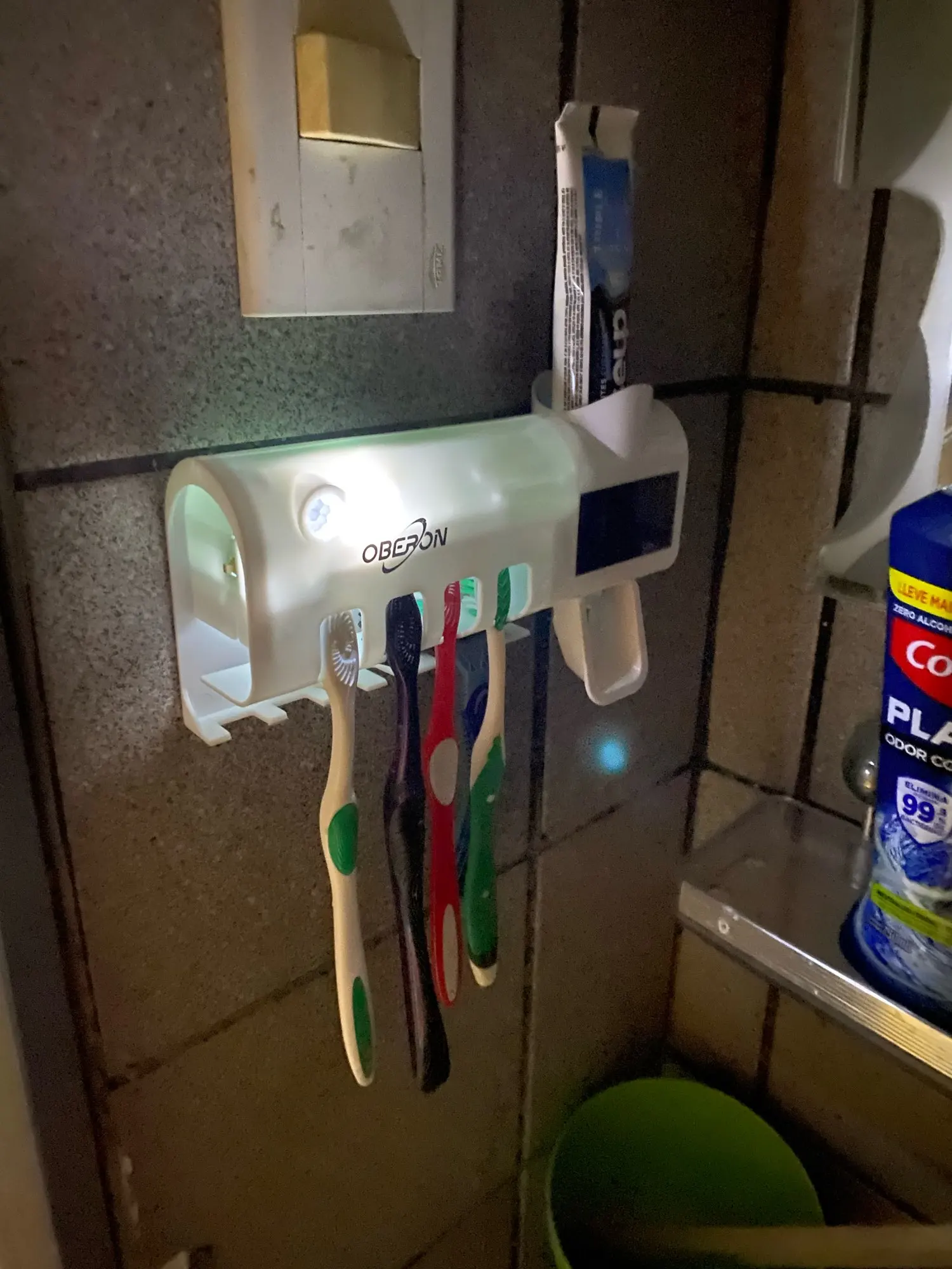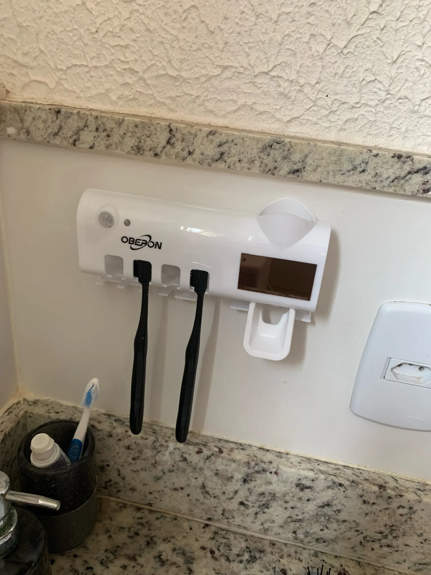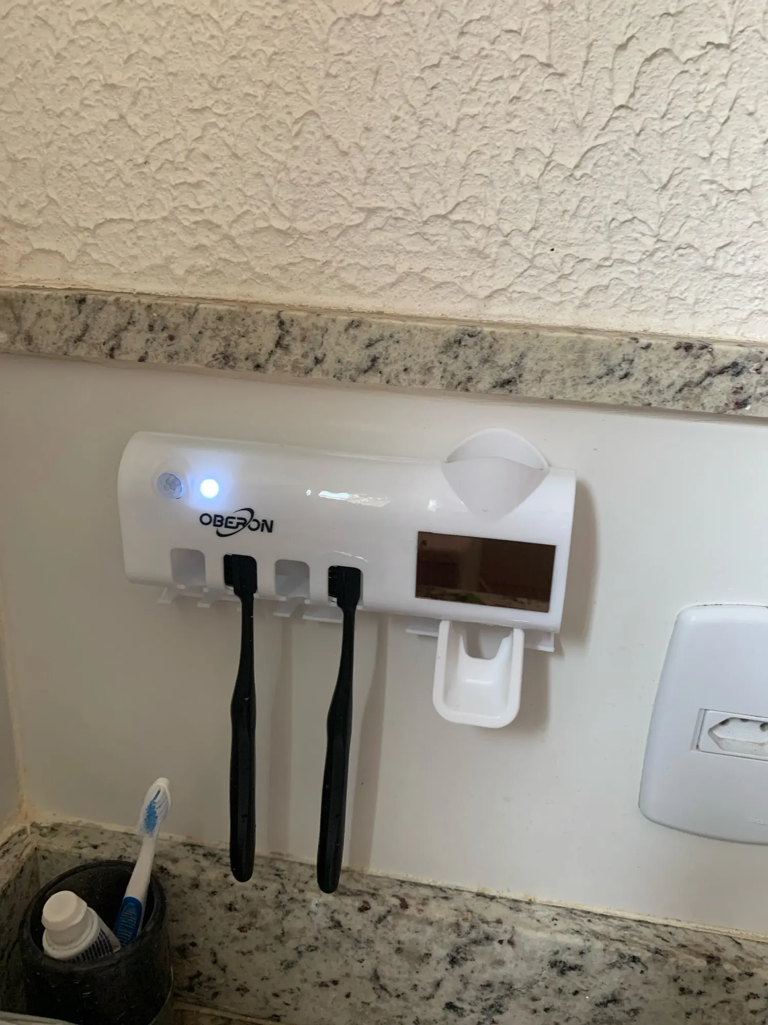 Esterilizador com luz ultravioleta que elimina 99% dos germes e bactérias diretamente da escova de dentes.